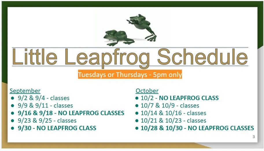 We will invoice monthly tuition before the 1st of each month. You will receive an email by mid to late August with info and class day/time will be on the month's invoice. They are placed in classes in order of registration fee received. Once classes are full, we will place them on a waiting list and then add them to classes as space opens up. FOR RETURNING STUDENTS, PLEASE UPDATE SKILL LEVEL IN THE CLASS MANAGER PORTAL.
